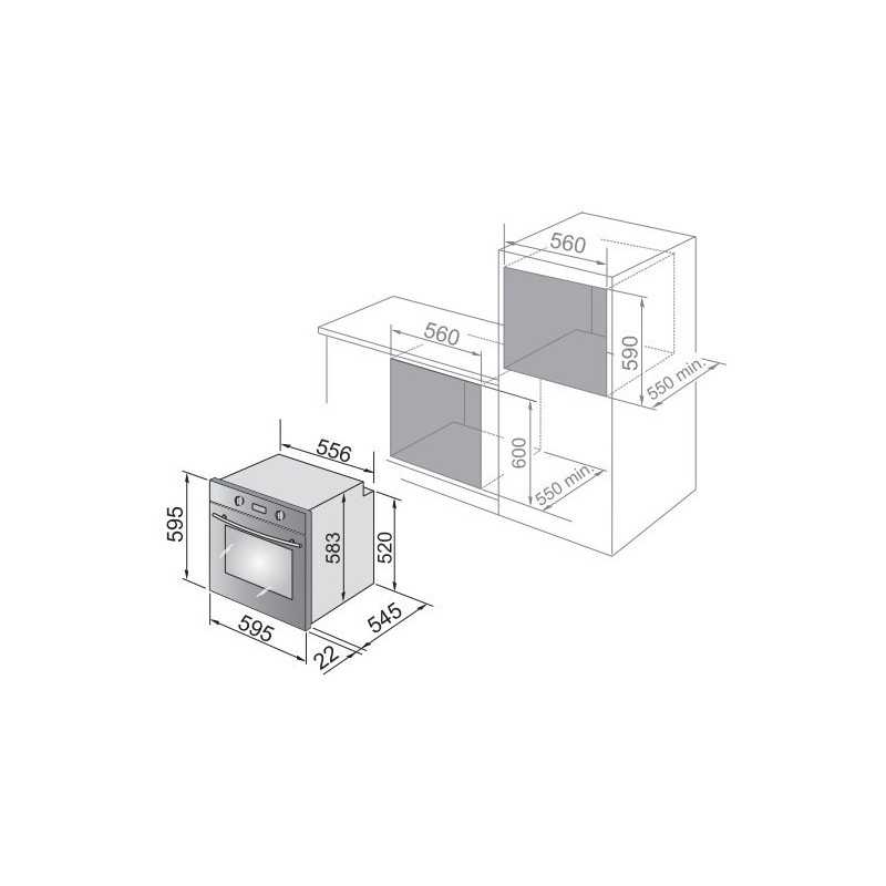 Con dimensioni di 59,5 x 59,5 x 54,5 cm, questo forno da incasso 60x60 si adatta perfettamente agli spazi standard delle cucine moderne. Il peso di 33 kg assicura stabilità e robustezza, mentre le dimensioni del compartimento (56 x 55 x 60 cm) offrono ampio spazio per teglie e pirofile di varie dimensioni.