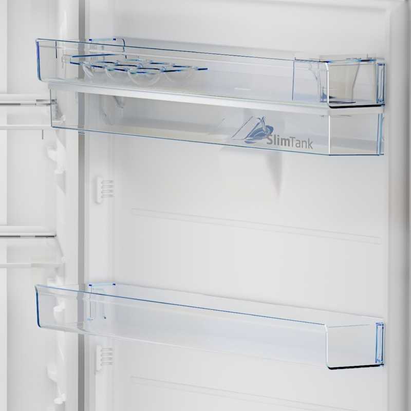 Il vano frigorifero, con una capacità netta di 313 litri, è dotato di un sistema di raffreddamento dinamico assistito da ventola che assicura una distribuzione uniforme del freddo. La funzione di raffreddamento rapido è ideale per abbassare velocemente la temperatura dopo l'inserimento di nuovi alimenti.
