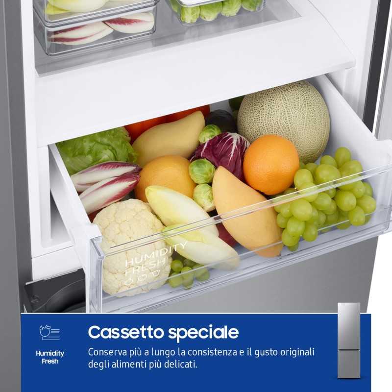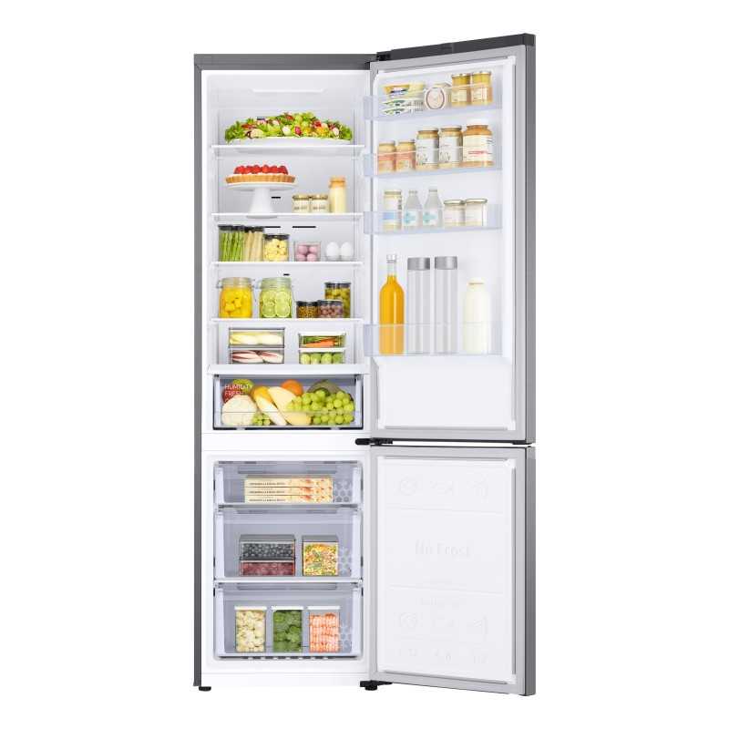 Il frigorifero Samsung RB38C600CS9 eccelle nella conservazione di ogni tipo di alimento. Il sistema di raffreddamento ventilato assicura una temperatura uniforme in ogni ripiano, mentre la funzione umidificatrice nel cassetto verdura mantiene frutta e ortaggi freschi più a lungo. Nel congelatore, la tecnologia No Frost previene la formazione di ghiaccio, mantenendo una temperatura costante fino a -19°C.