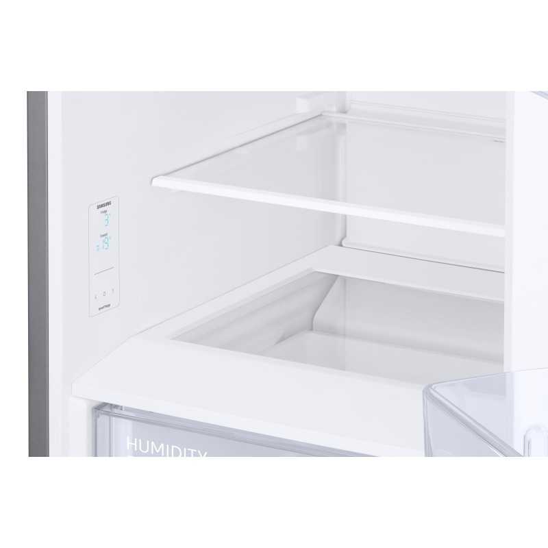 Il design in acciaio inox del Samsung RB38C600CS9 si integra perfettamente in ogni cucina moderna. La profondità standard di 60 cm e l'apertura a filo permettono di posizionare il frigorifero anche in spazi ristretti, garantendo una completa apertura delle porte a 90° senza interferenze con le pareti laterali.