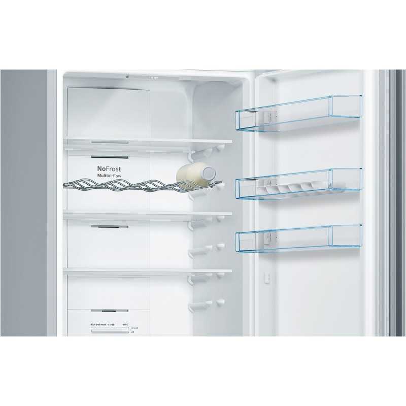 La tecnologia No Frost elimina la formazione di brina sia nel frigorifero che nel congelatore, rendendo superfluo lo sbrinamento manuale e garantendo una conservazione ottimale degli alimenti. Il sistema Multi-Airflow assicura una distribuzione uniforme dell'aria fredda, mantenendo costante la temperatura in ogni ripiano.