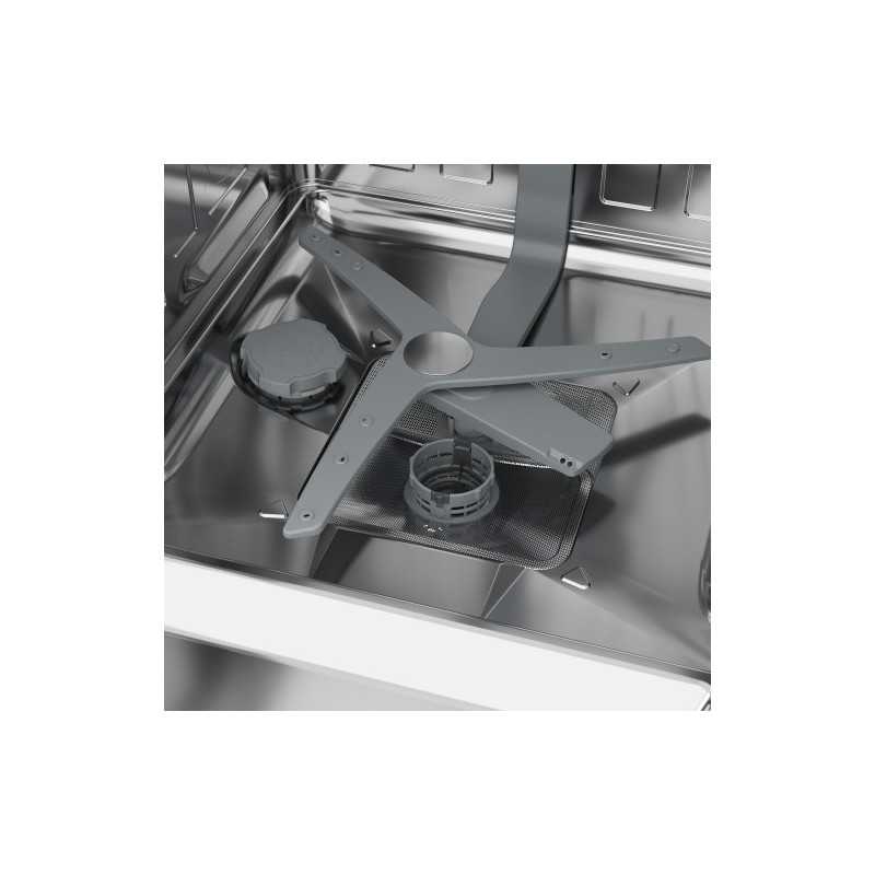 La lavastoviglie è dotata di un addolcitore d'acqua integrato che previene la formazione di calcare, prolungando la vita dell'elettrodomestico e migliorando l'efficacia del lavaggio. Gli indicatori di sale e brillantante assicurano che la macchina operi sempre nelle condizioni ottimali, mentre il filtro autopulente riduce la manutenzione necessaria.