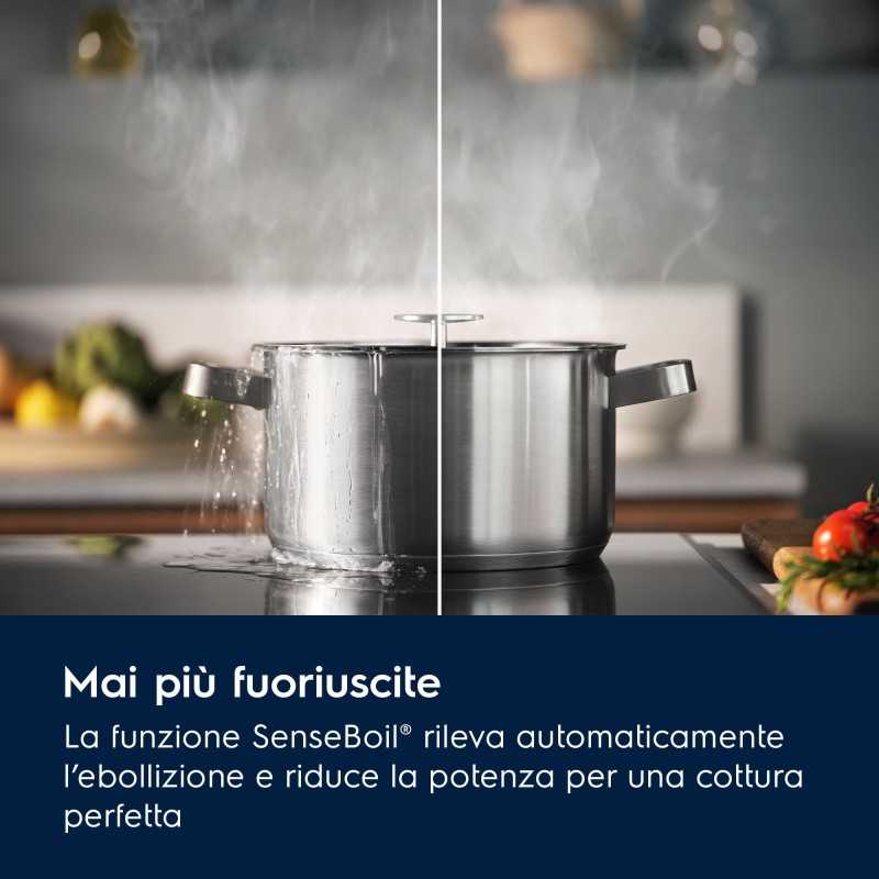 - Funzione SenseBoil®: Regola automaticamente le impostazioni della temperatura per mantenere l'acqua a sobbollire, permettendoti di concentrarti sulla preparazione dei piatti senza dover controllare l'acqua.