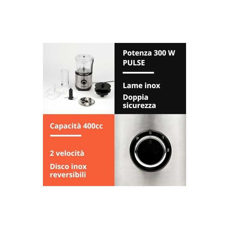 - Accessori inclusi: lama tritatutto e disco reversibile inox
