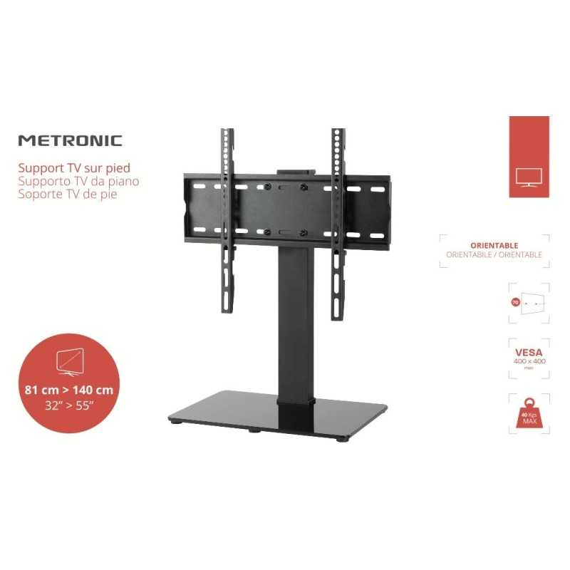 Il supporto TV girevole Metronic è la soluzione ideale per chi desidera un design elegante e funzionale nel proprio soggiorno. Progettato per TV da 32" a 55", questo supporto offre 3 altezze regolabili e un orientamento fino a 70°, garantendo un comfort di visione senza pari. La sua installazione è semplice e intuitiva, permettendo di posizionare la TV senza forare il muro.