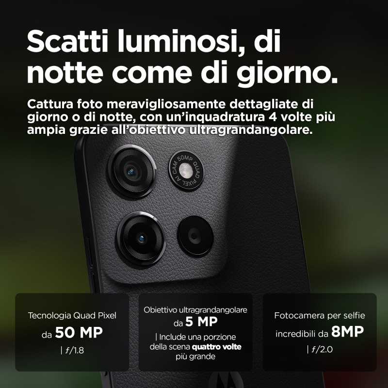 La fotocamera da 50MP del Moto G15 è un vero gioiello tecnologico. Cattura immagini dettagliate e nitide in qualsiasi condizione di luce, minimizzando gli effetti artificiali. Che si tratti di paesaggi mozzafiato, ritratti o foto in condizioni di scarsa illuminazione, questo smartphone con fotocamera 50MP offre risultati sorprendenti. La modalità notturna avanzata e l'intelligenza artificiale lavorano in sinergia per ottimizzare ogni scatto, permettendoti di immortalare momenti preziosi con una qualità quasi professionale.